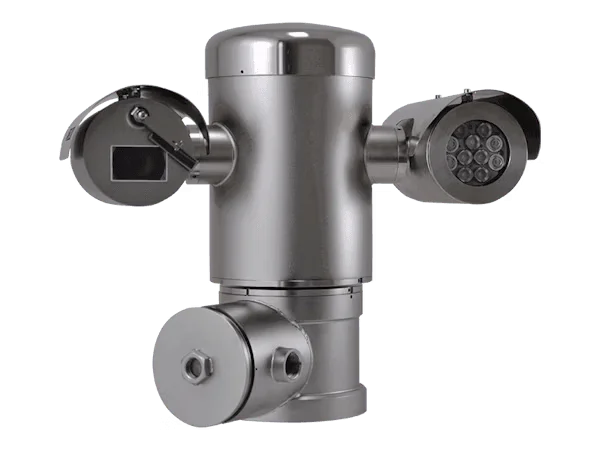 Monitor and control operations in wide hazardous areas with Pelco’s heavy-duty PTZ camera and long-range IR illuminator, which are capable of operating in extreme environmental conditions.